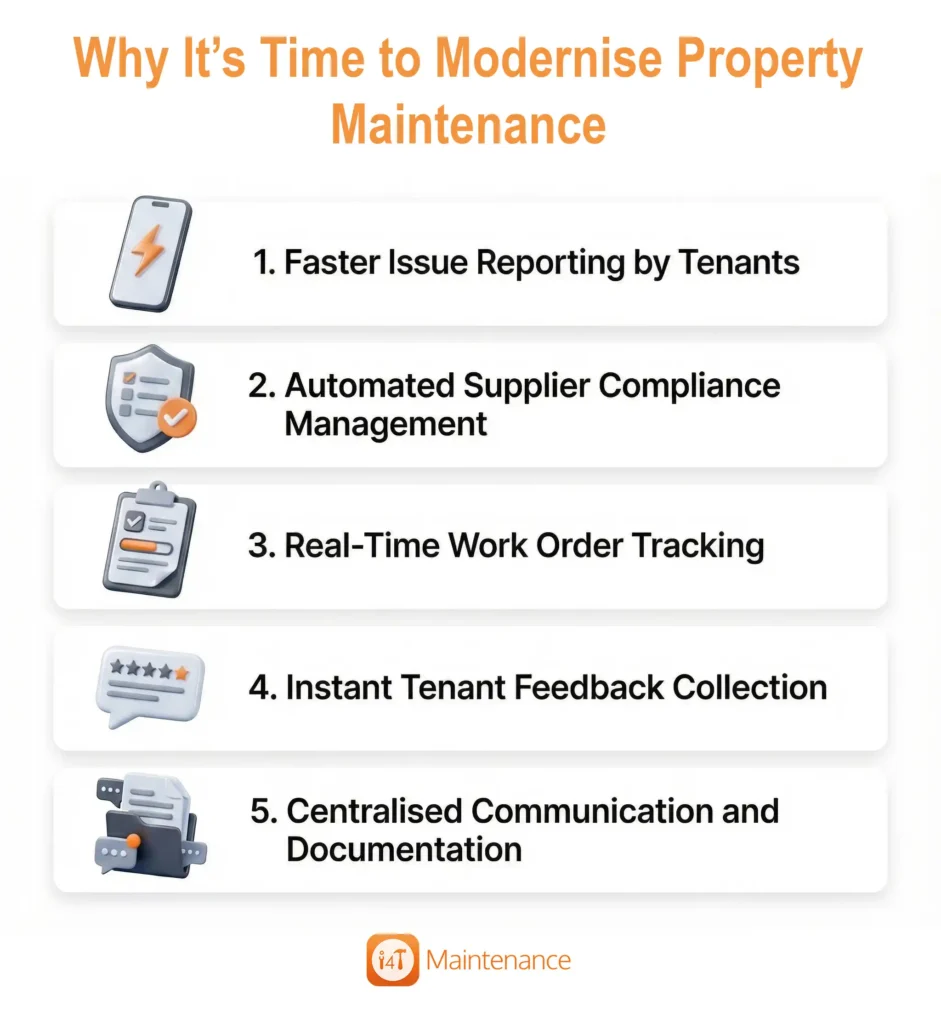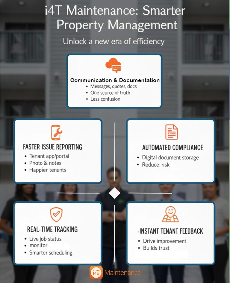 From faster issue reporting and automatic compliance management to real-time job tracking, instant feedback, and centralised communication, digital tools like i4T Maintenance make property management smoother, safer, and far more efficient.