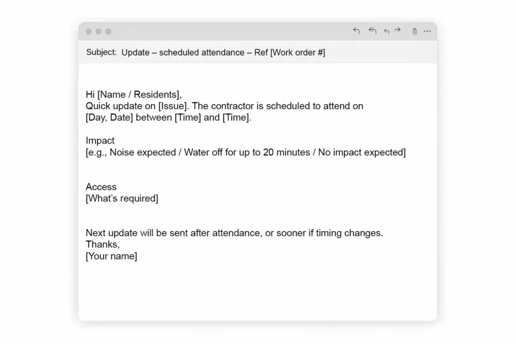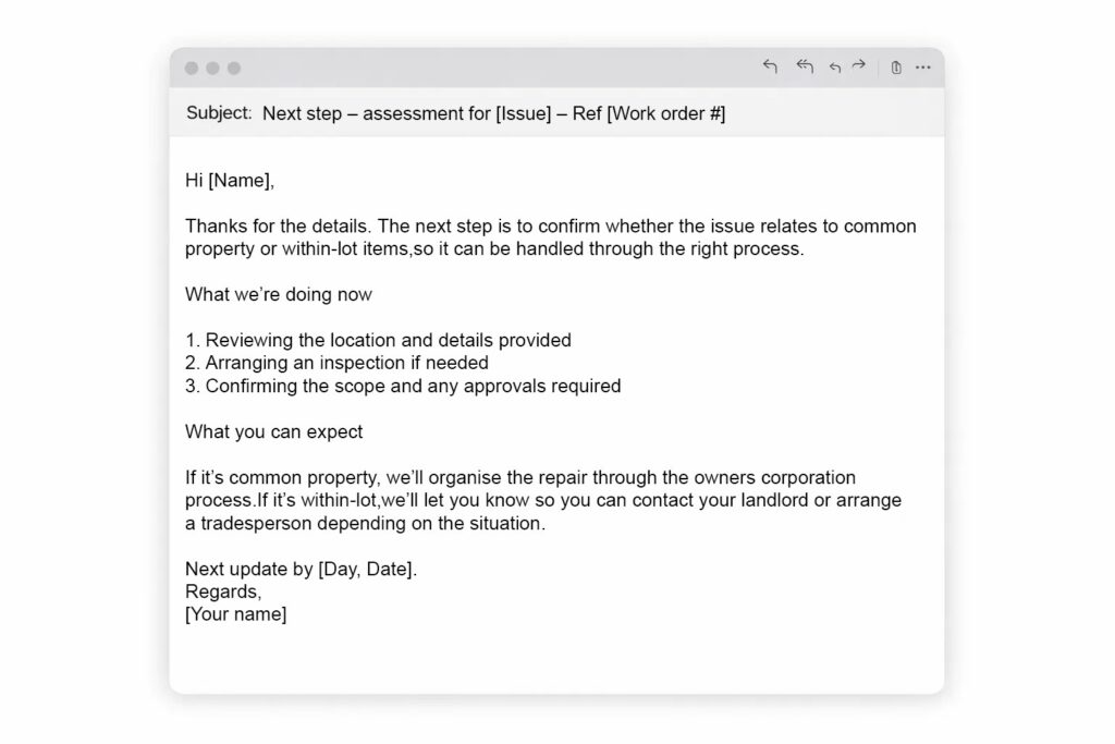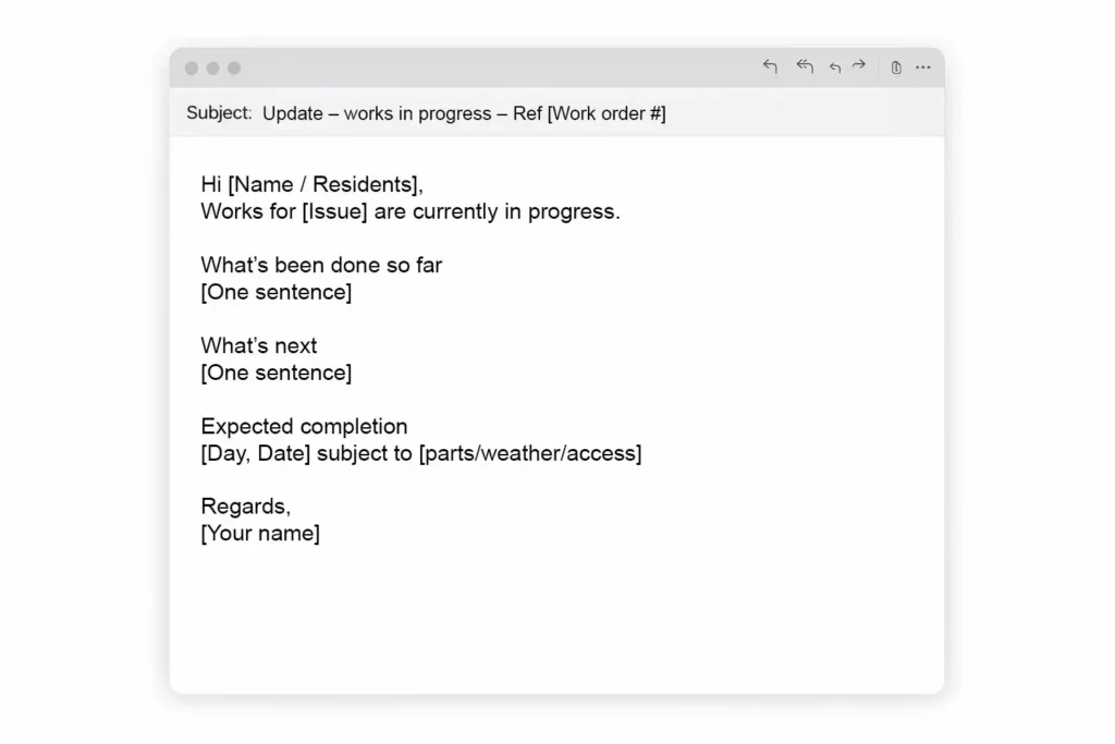 Below is a reusable work order update email template strata teams can use.