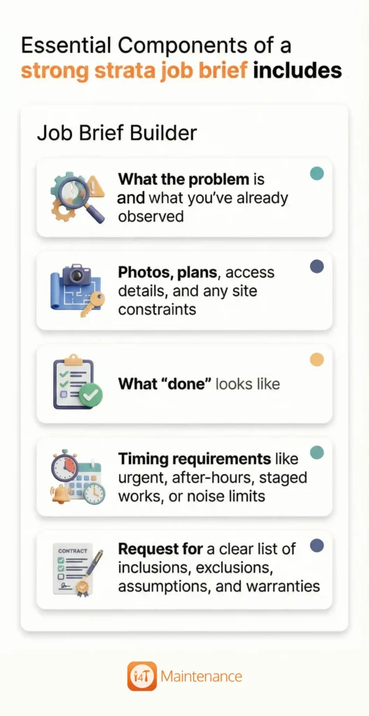 A strong strata job brief usually includes: