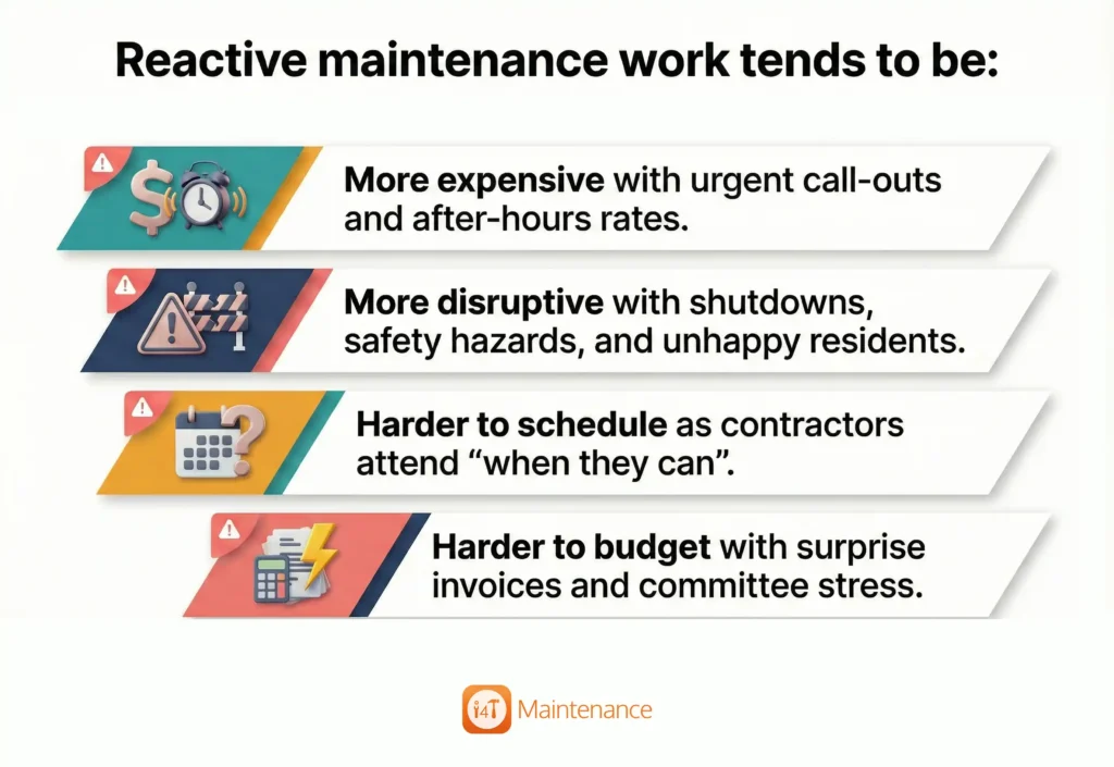 A preventive plan should include a simple communication approach for planned work, especially for anything that affects car parks, water shutdowns, entry access, or loud works. When your notifications are consistent, you avoid escalations, and you reduce the time spent replying to one-off emails.